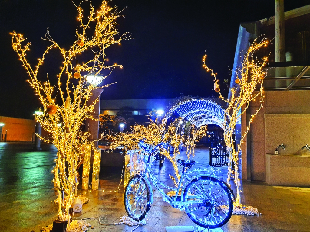 조명이 설치된 조형물들