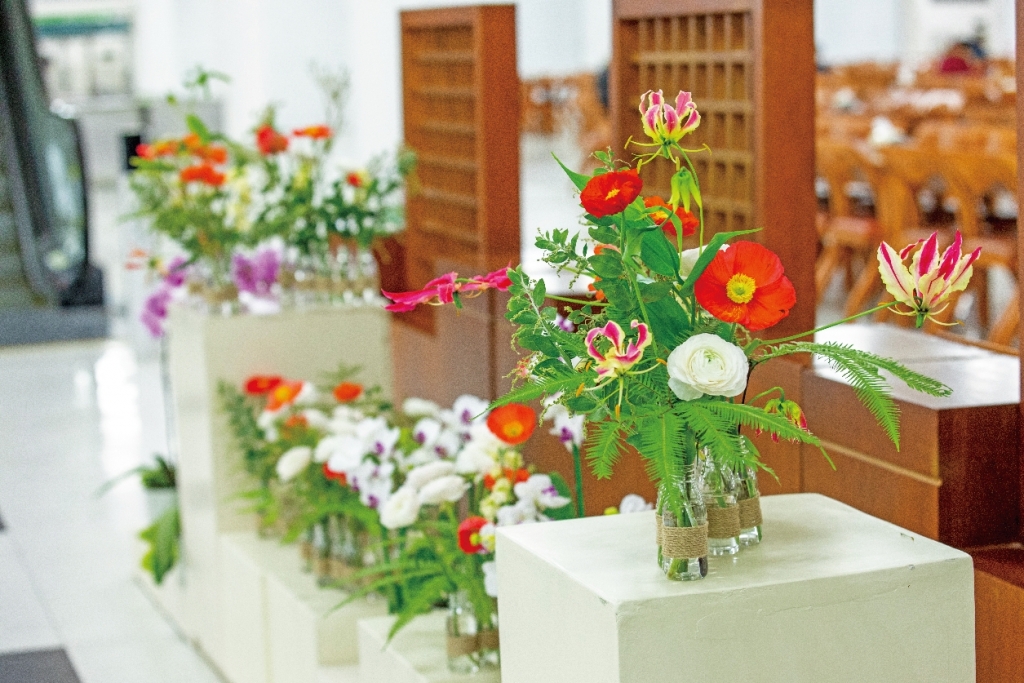 종합식당 중앙 꽃꽂이 작품